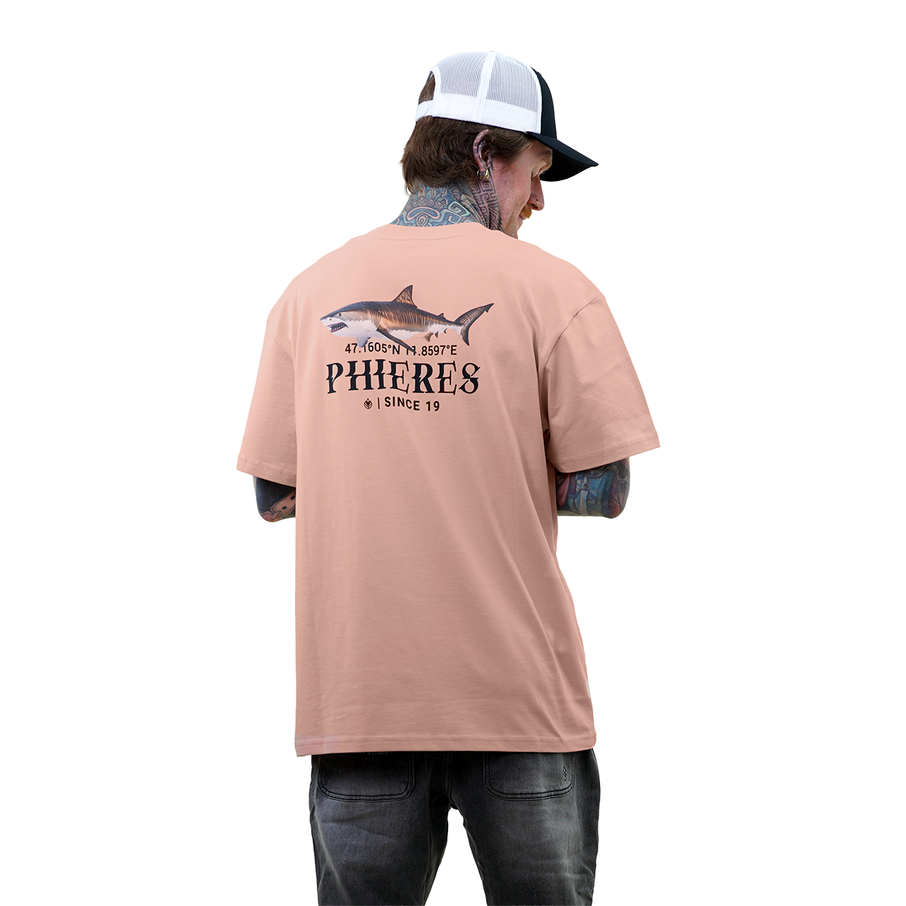 Der lockere Boxy Fit sorgt für einen entspannten Sitz und eine moderne Silhouette, perfekt für lässige Tage oder stylische Streetwear-Looks. Auf der Vorderseite gibt ein dezenter Print einen ruhigen Akzent, während der große Backprint mit einer coolen Hai-Grafik dem Shirt seinen echten Charakter verleiht. Die Kombination aus zurückhaltender Front und markantem Rückenmotiv macht das T-Shirt zum Hingucker. Gefertigt aus 100 % Bio-Baumwolle fühlt sich das Material weich an und bietet hohen Tragekomfort.Features