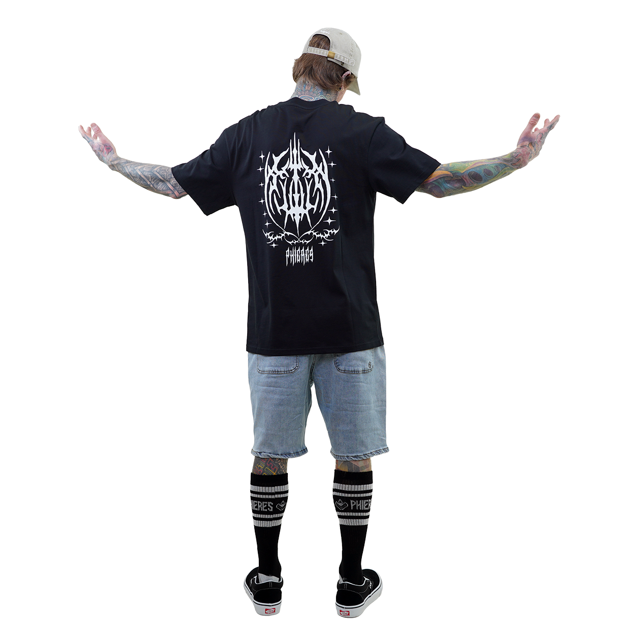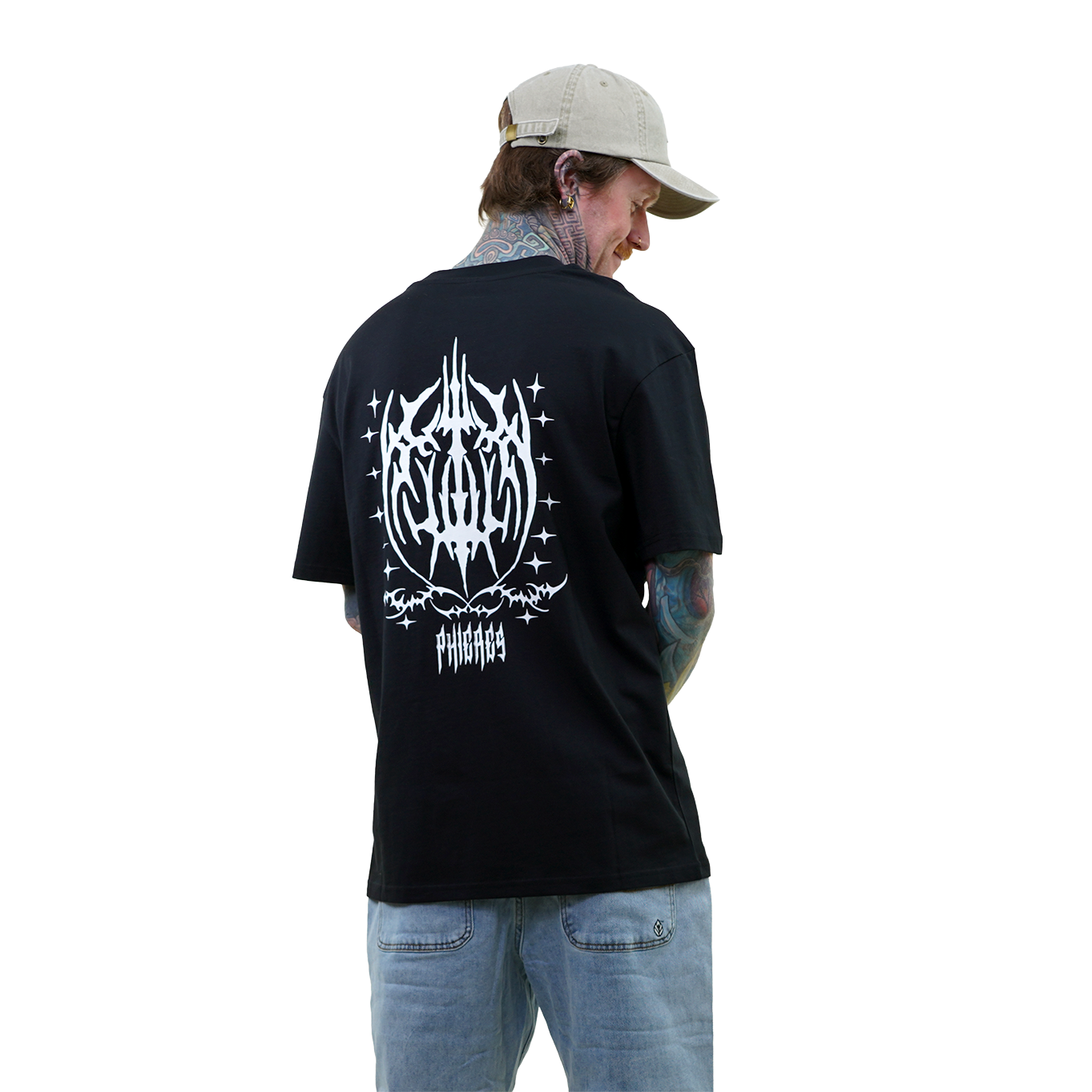 Das Paladineph T-Shirt in Schwarz verbindet einen klaren Schnitt mit einer rockigen Ästhetik. Der lockere Boxy Fit sorgt für eine moderne Silhouette, während die Prints auf Vorder- und Rückseite dem Shirt seinen charakterstarken Look verleihen. Vorne setzt das Logo ein markantes Detail, auf dem Rücken entfaltet sich das volle Artwork mit einer kraftvollen, fast mystischen Grafik, die an Band-Merch und Underground-Designs erinnert. Gefertigt aus 100% Bio-Baumwolle trägt sich das Shirt angenehm weich und bleibt gleichzeitig robust und formstabil. Dieses Shirt bringt eine lässige Portion Rock-Vibe in jedes Outfit und bleibt dabei zeitlos und vielseitig.Features