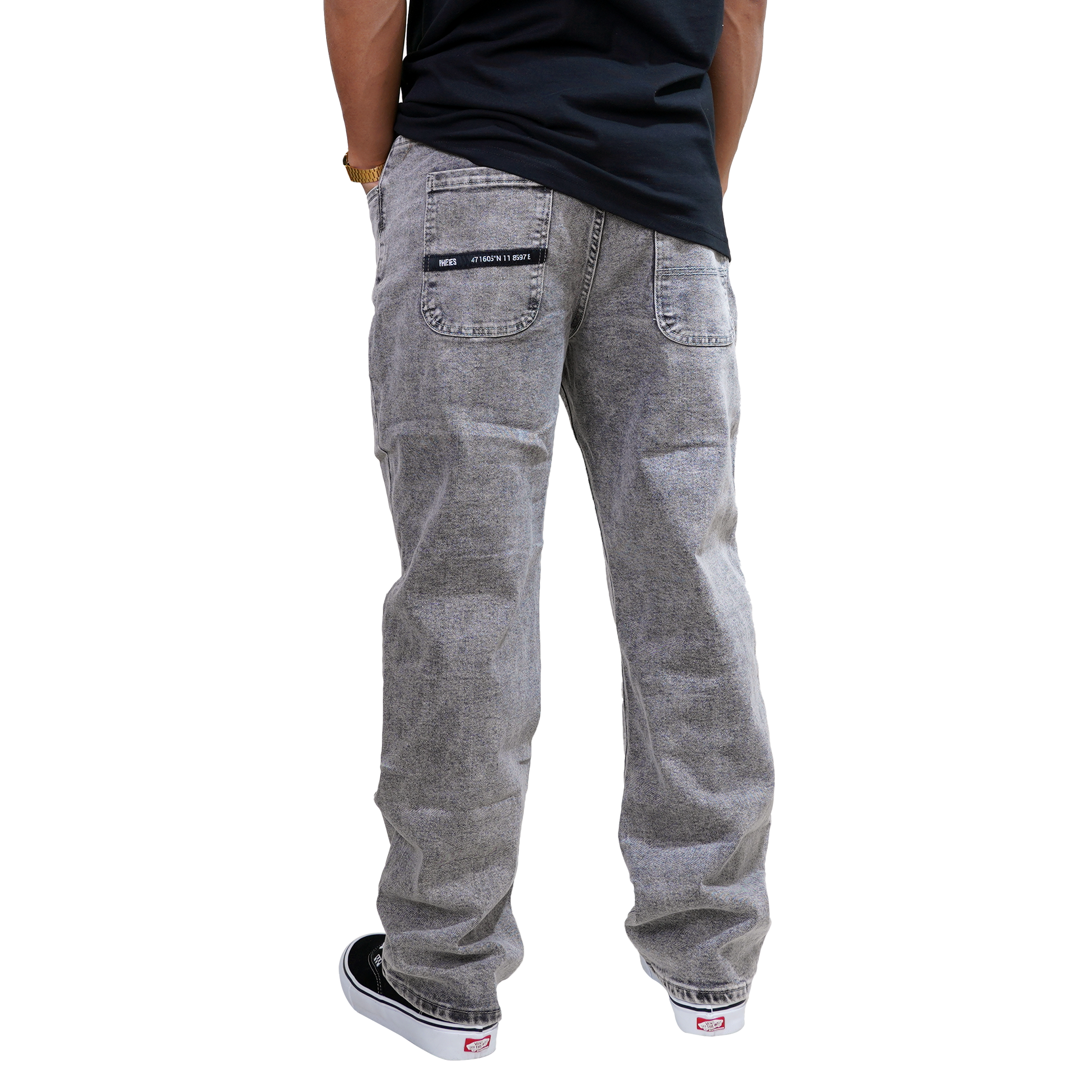 Logo label: Discreetly placed on the back left pocket, a statement detail that enhances your look.